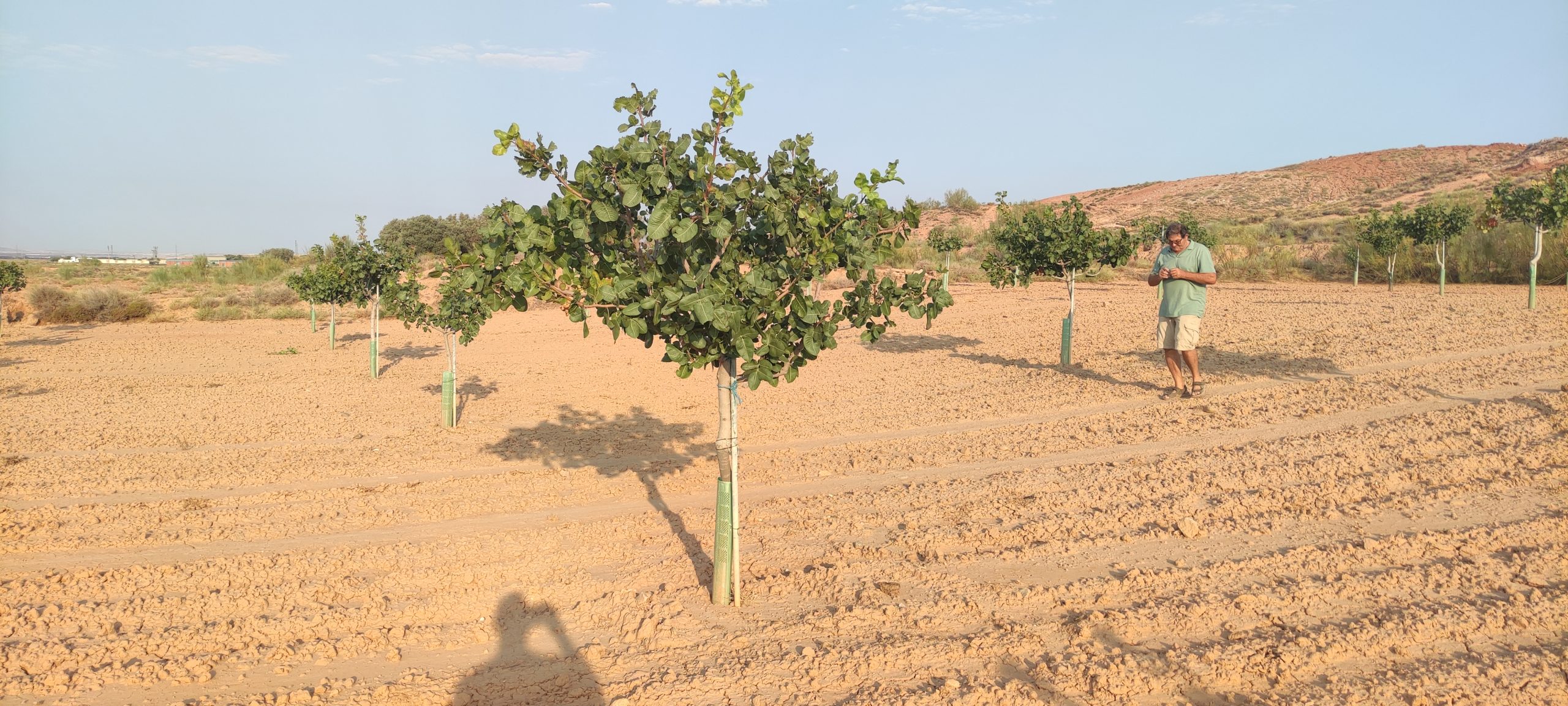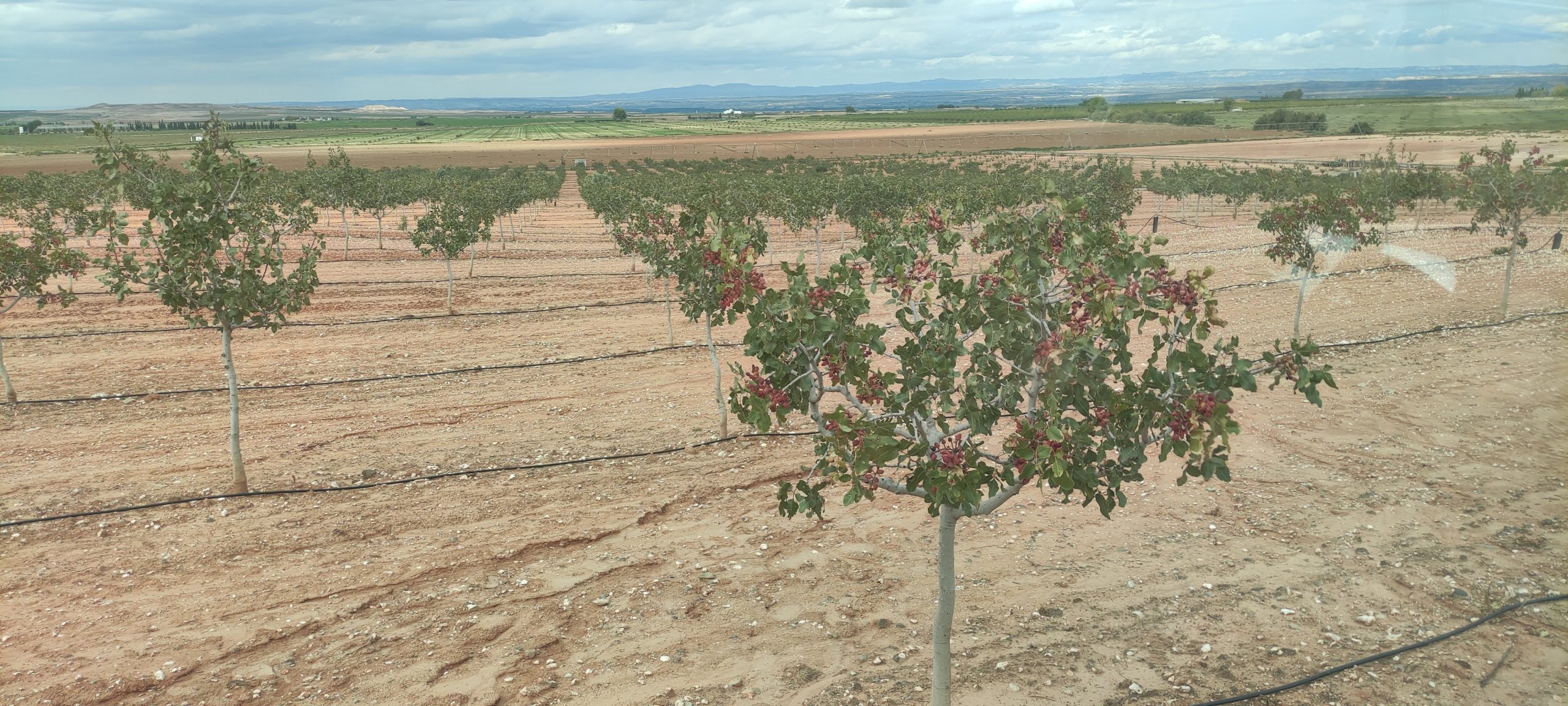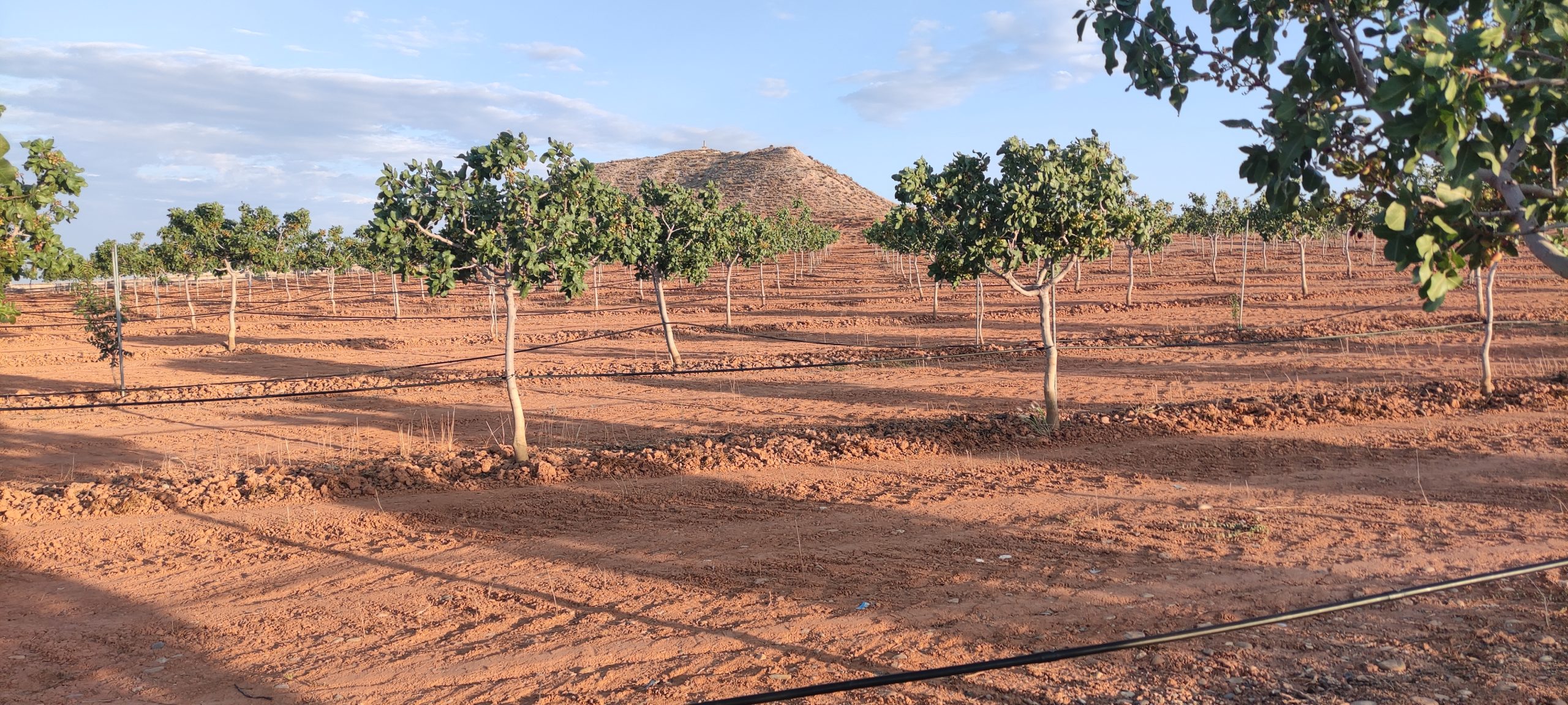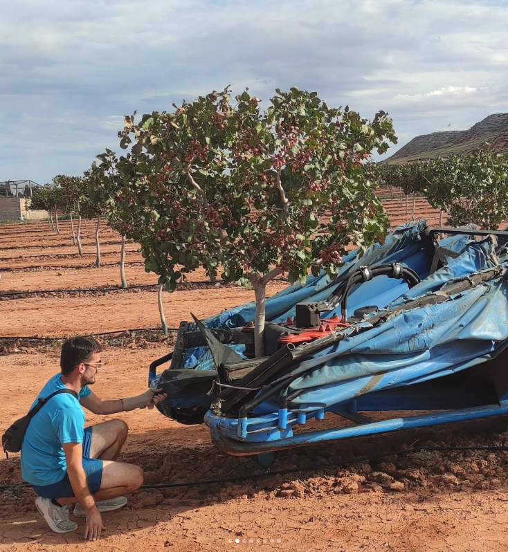 Año 2016 , comienza en Quinto este proyecto , en pleno valle del Ebro y prácticamente en el centro de Aragón, siendo una de las primeras explotaciones de un tamaño considerado que se instaura en la zona de un cultivo desconocido, ya que Aragón y concretamente Zaragoza es tierra de cereal, de vid y olivo en su mayor parte. Año 2014 y 2015 nos desplazamos en repetidas ocasiones a Ciudad Real para aprender y ver explotaciones , allí se encuentran las mas veteranas del país y por lo tanto donde mas experiencia y aprendizaje podemos tener. Realicemos estudios climáticos de 30 años atrás para ver patrones y tener claro si es viable el cultivo en esta zona y por fin dar el paso. A día de hoy principios de 2025 y camino de 9 años después, no a sido todo como se esperaba ni mucho menos, pero la confianza de los clientes que ya nos conocen, nos empujan para seguir cultivando buenísimos pistachos y seguir creciendo poco a poco.